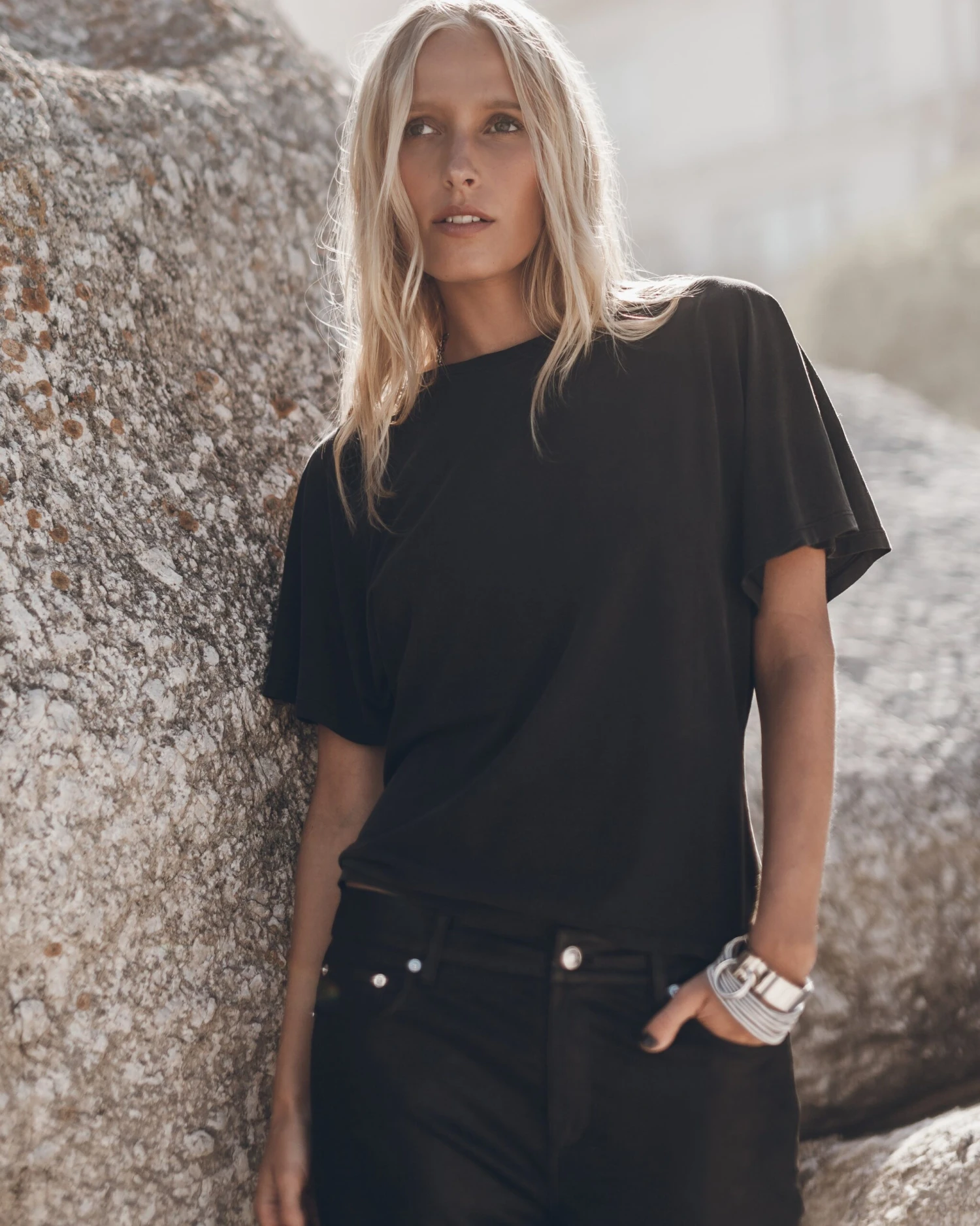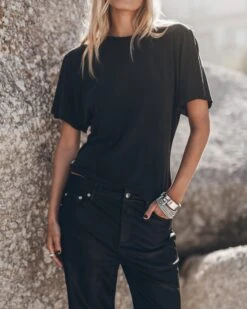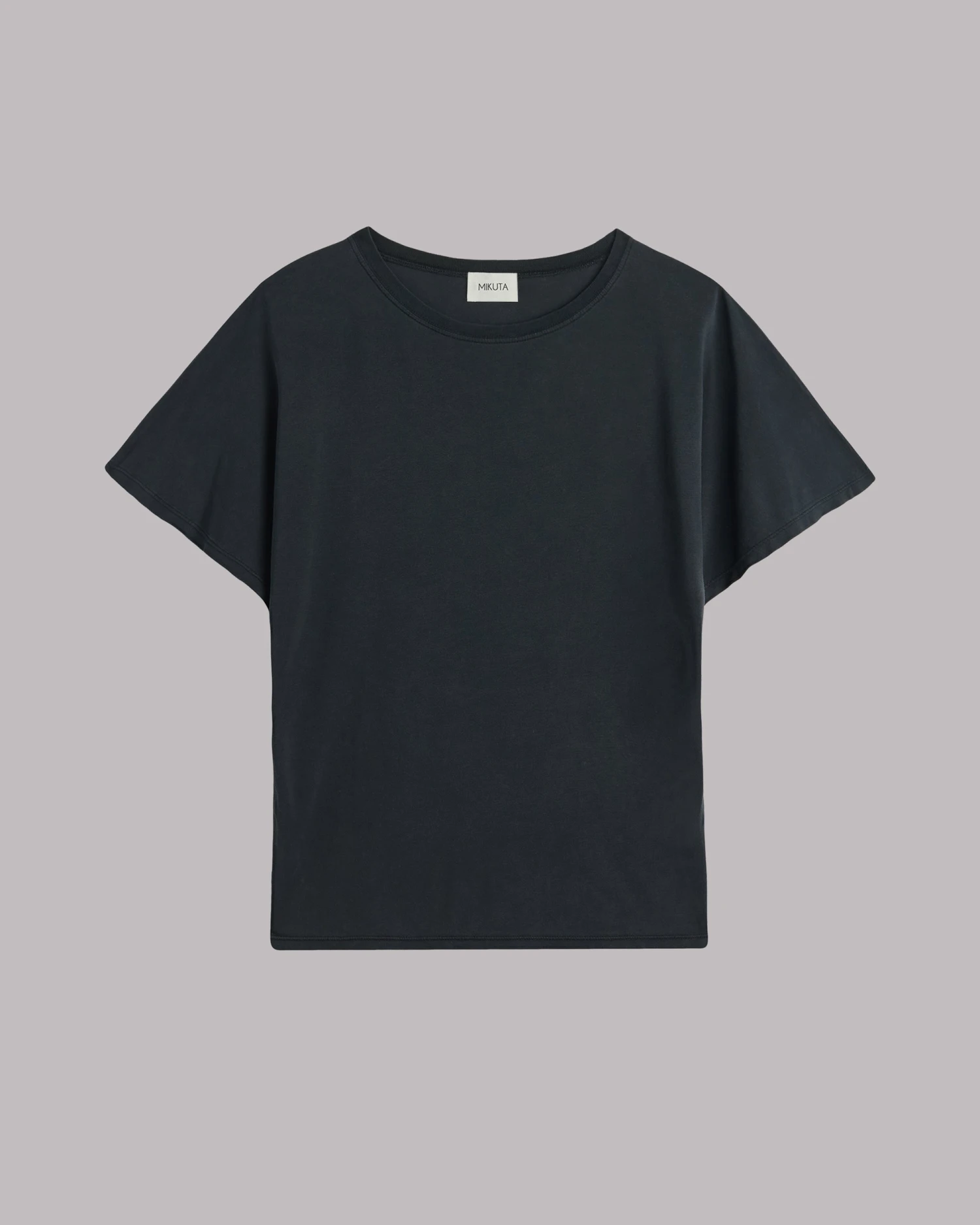 Dark bat T-shirt in light lyocell & cotton-mix. Bat sleeves and semi-cropped fit.
