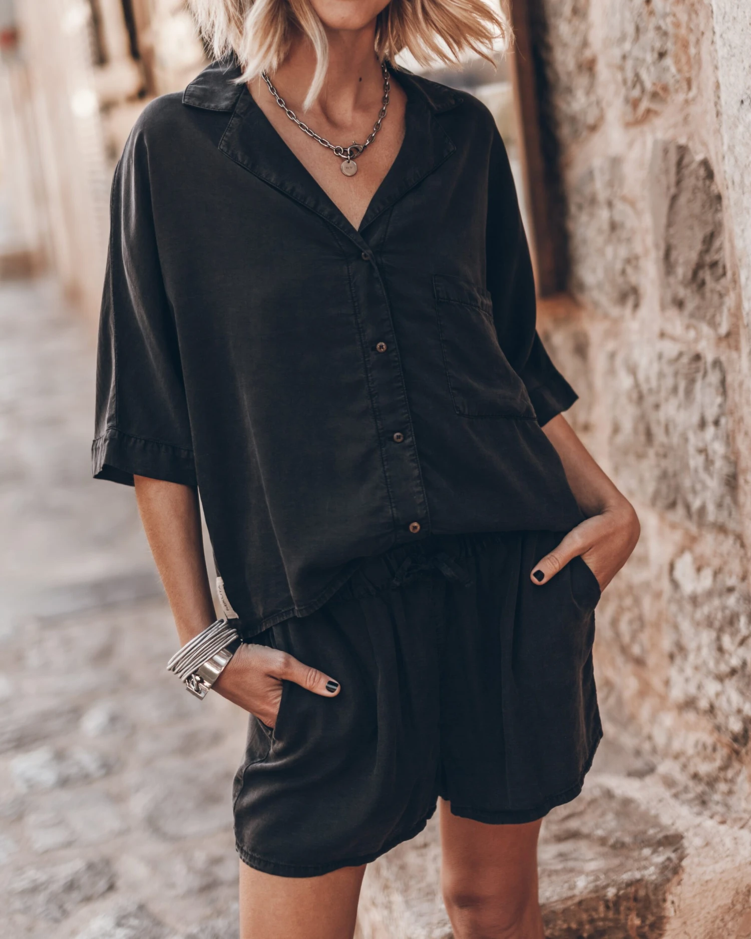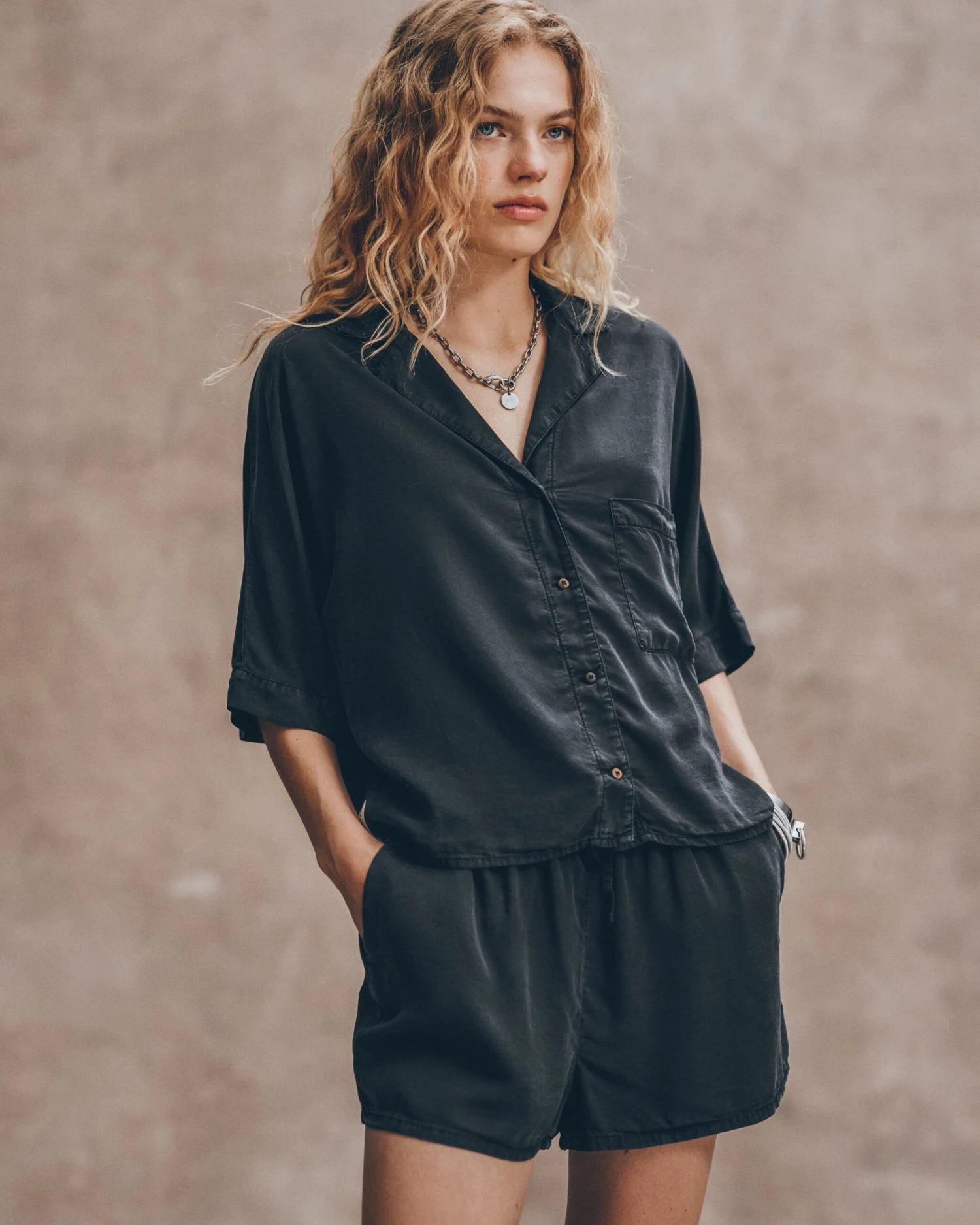 Comfy and relaxed shirt in faded black made of soft lyocell.