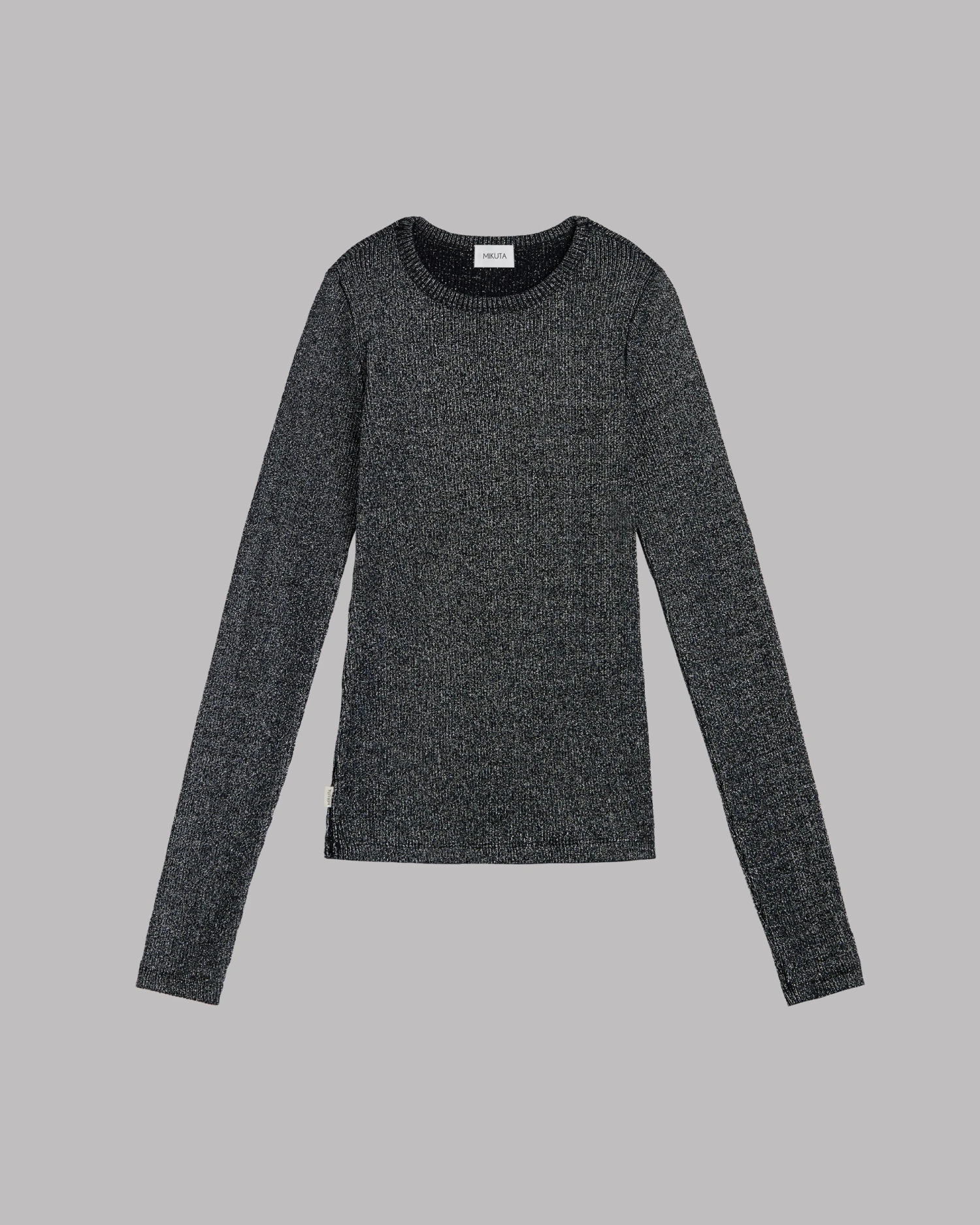 Glitter ribbed longsleeve in black with silver lurex and extra long sleeves.