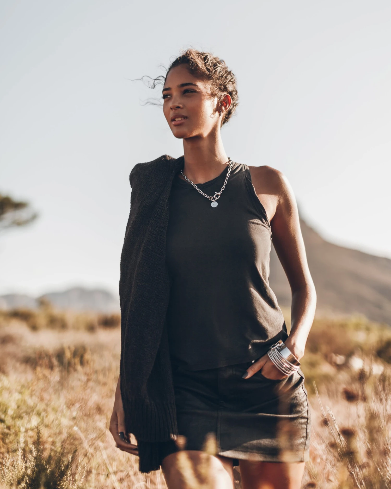 Our relaxed tank top with a crew neckline—perfect for effortless style and all-day comfort.