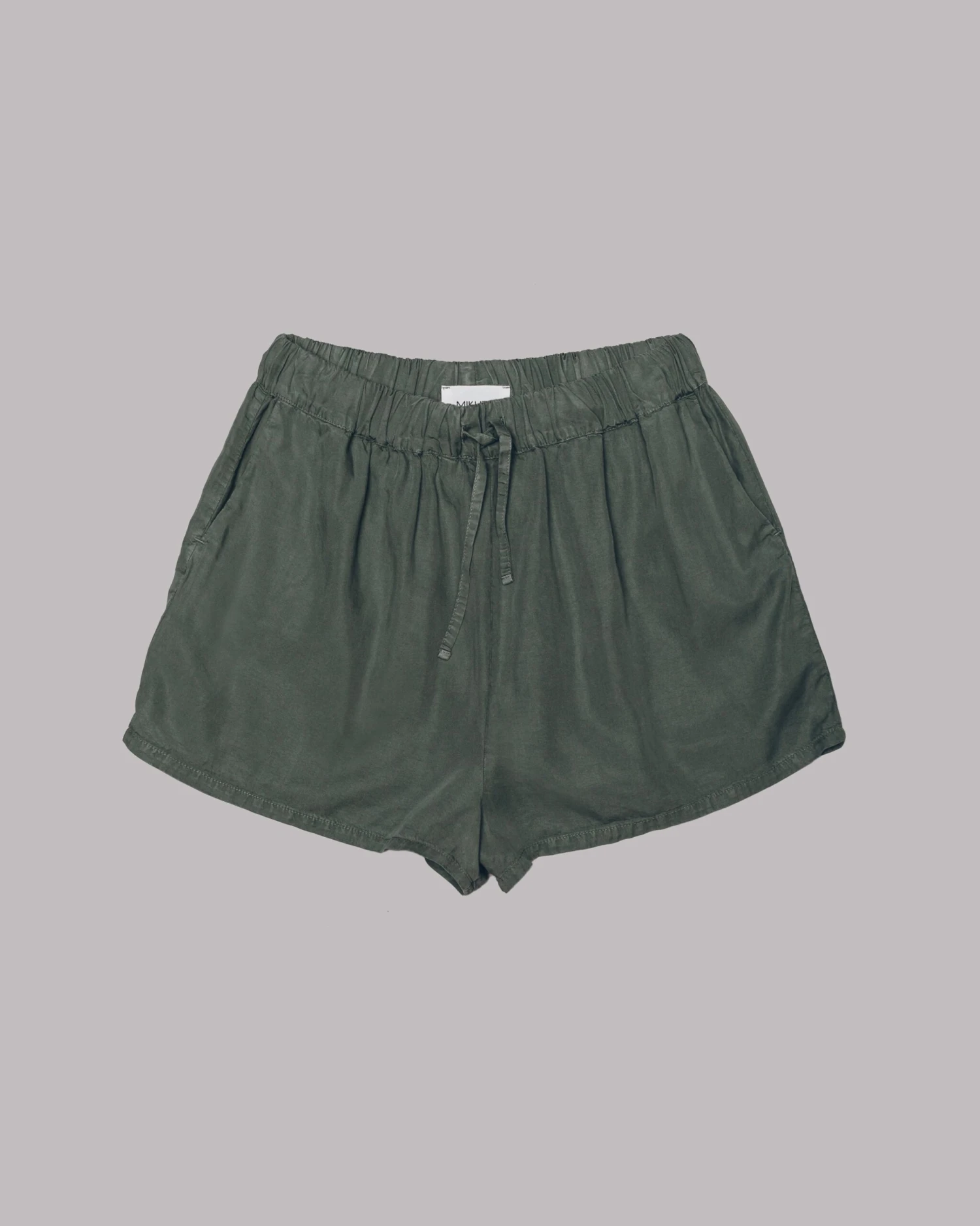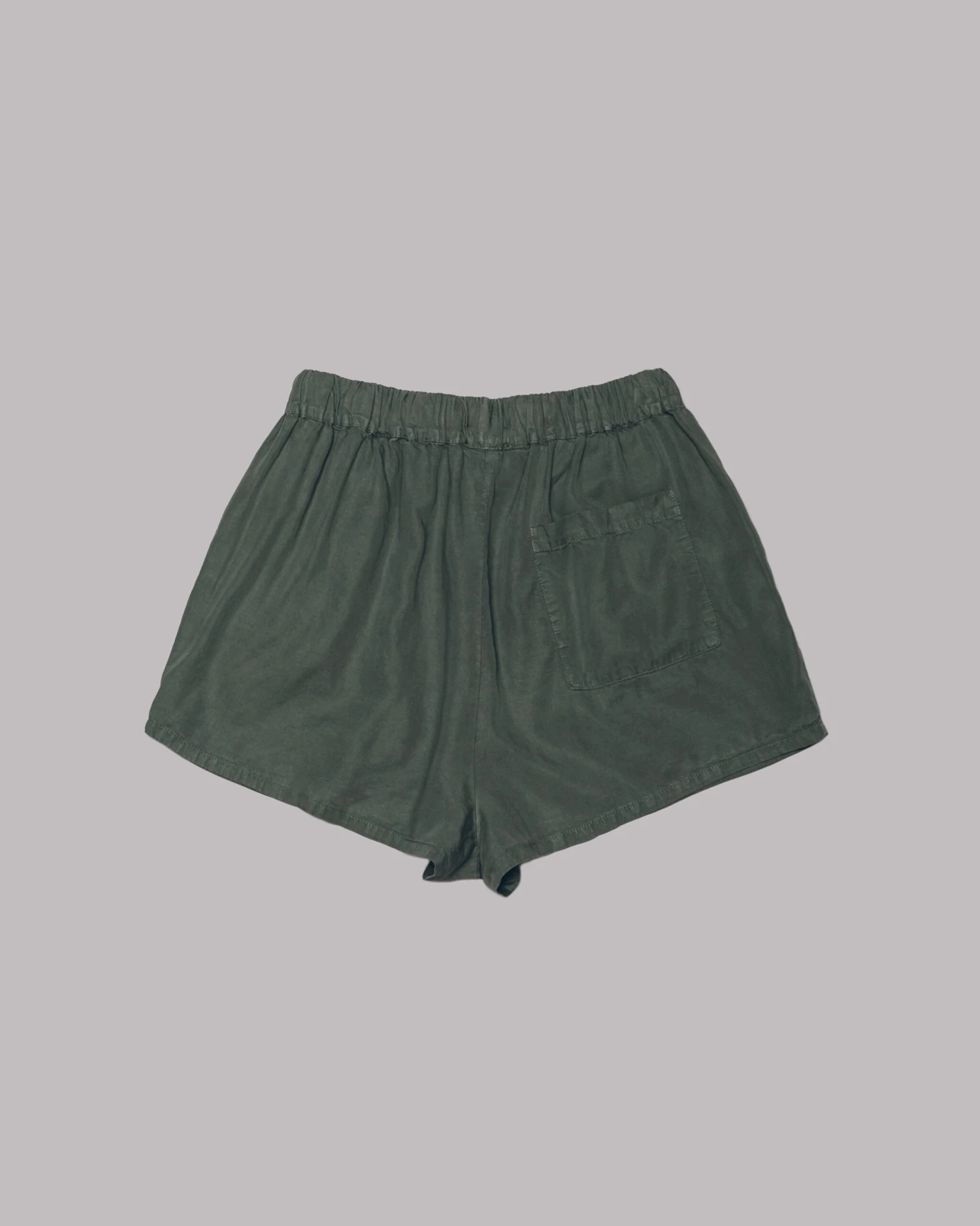 Comfy and relaxed shorts in olive made of soft lyocell. The shorts have a pocket on each side, one pocket on the back and a stretchy waist.