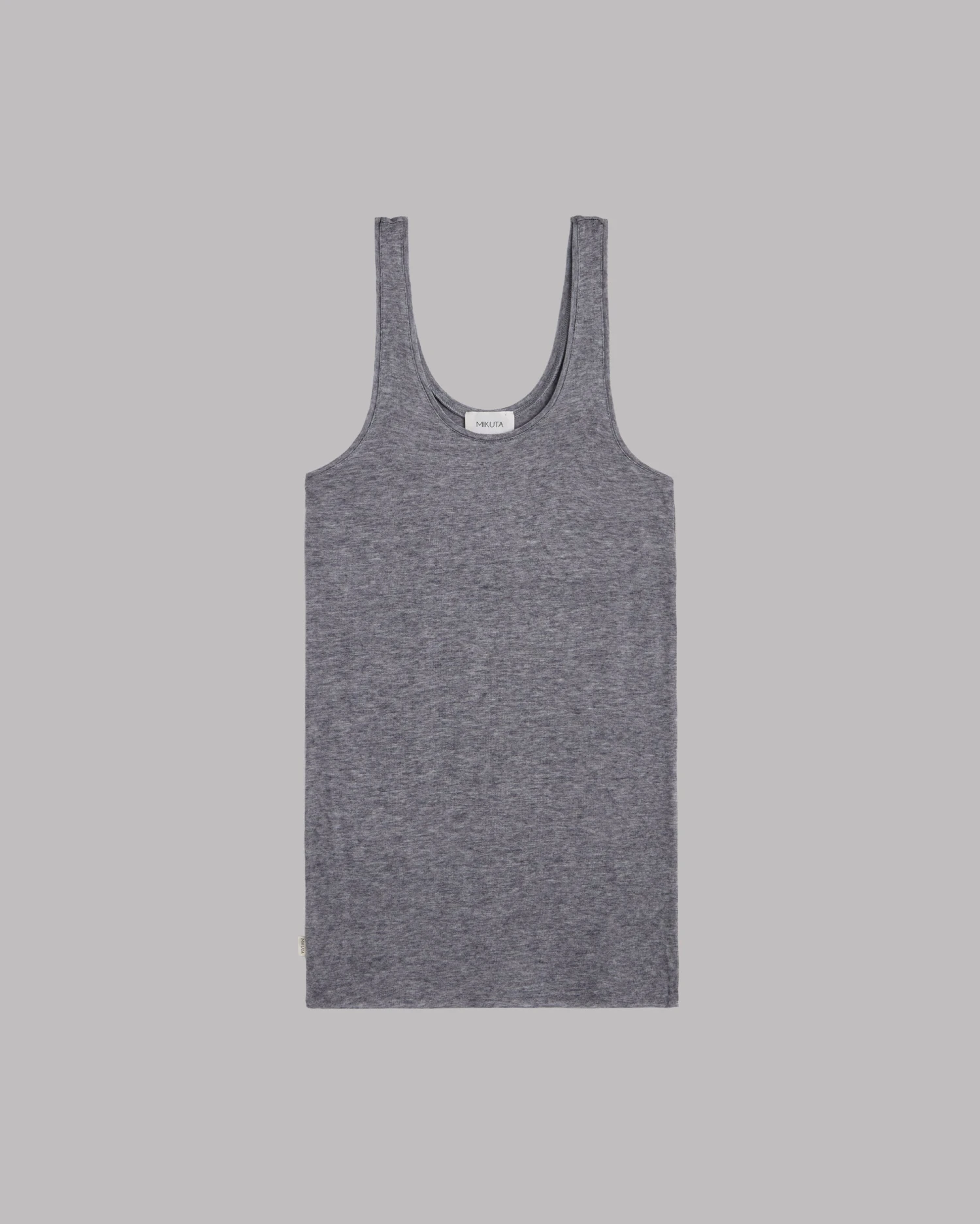 Grey melange tank top in soft lyocell-wool mix with raw edge on the bottom.
