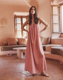 Dyed in colorway pink rose, this cotton classic lets the body breathe with a halter neckline and inverted V open back straps.