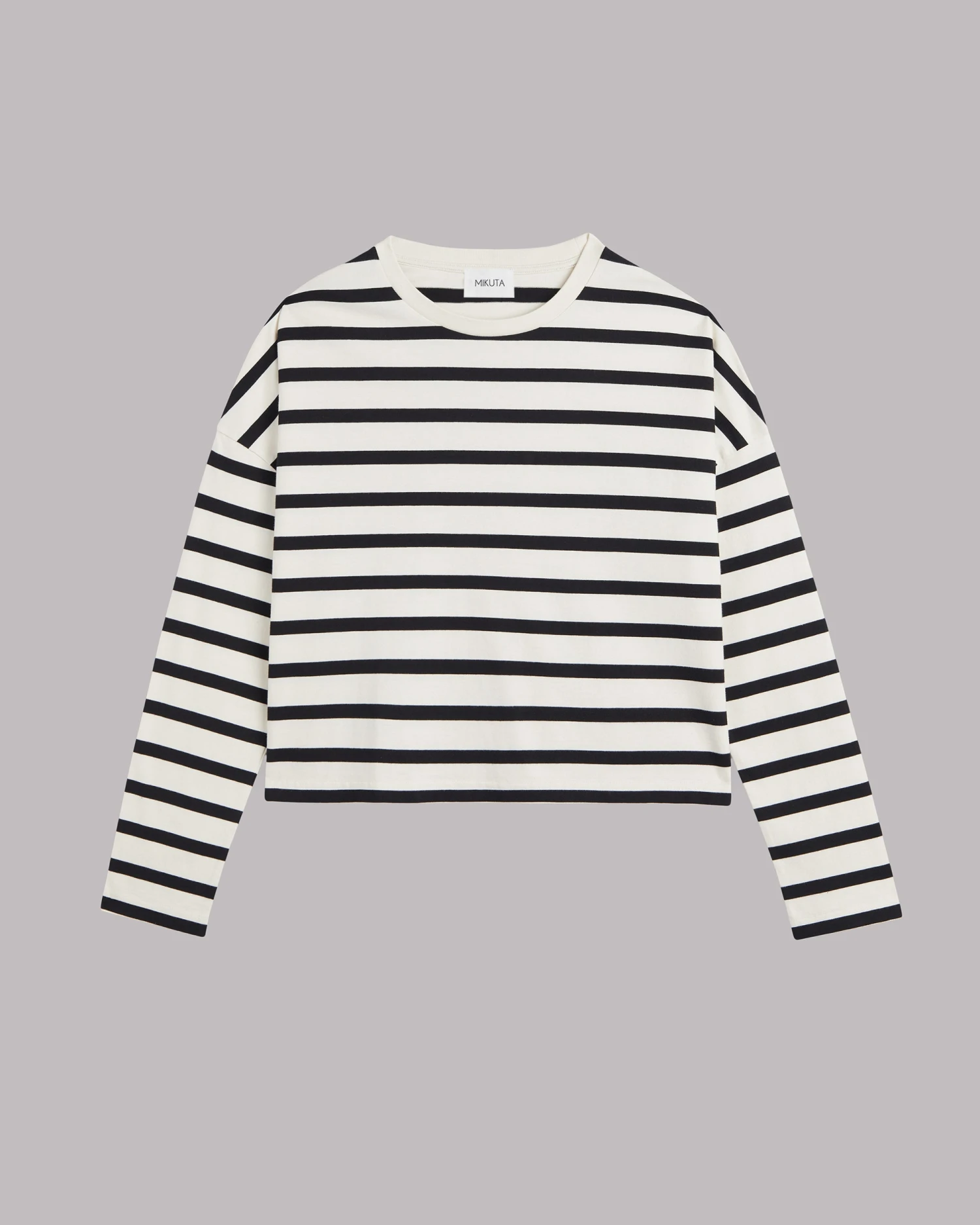 The Striped Loose Cotton Longsleeve’s thick yet breathable pure cotton fabric is totally opaque, allowing the relaxed, oversized silhouette to invite you in. With a tailored crew neckline, wide drop shoulder and sleeves, you’ll be rocking these blunt stripes from day to night.